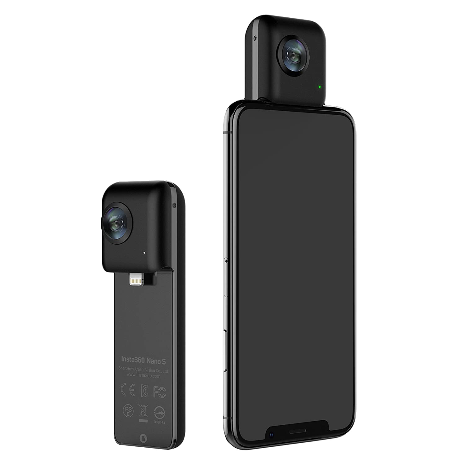 Insta360 Nano создан специально для смартфонов Apple Камера совместима с iPhone 6/6 Plus, 6s/6s Plus, 7/7 Plus, 8, X, XS. XR. Использовать устройство можно подключив к смартфону с помощью интерфейса Lightning, или автономно.